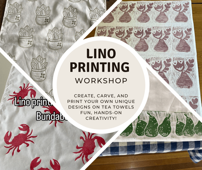 Join us for a fun and hands-on Lino Printing on Fabric Workshop in Currumbin on the Gold Coast!